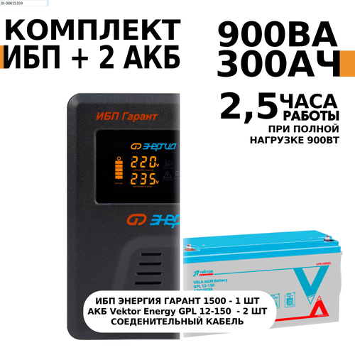 Интерактивный ИБП Энергия Гарант 1500 в комплект с АКБ Vektor Energy GPL 12-150 2шт.