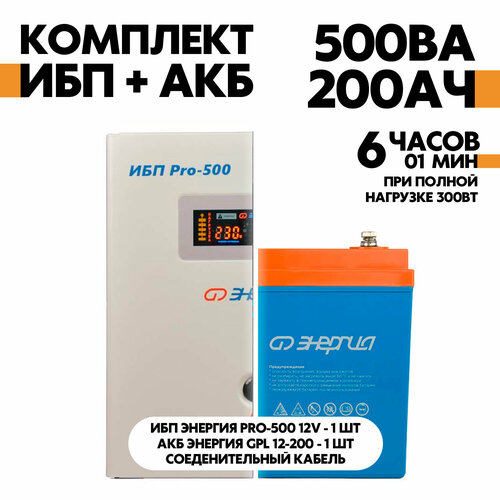 Интерактивный ИБП Энергия Pro-500 12V в комплект с АКБ Энергия GPL 12-200