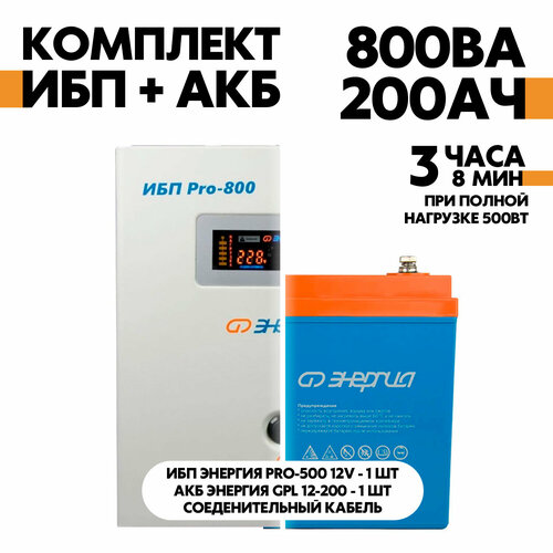 Интерактивный ИБП Энергия Pro-800 12V в комплект с АКБ Энергия GPL 12-200