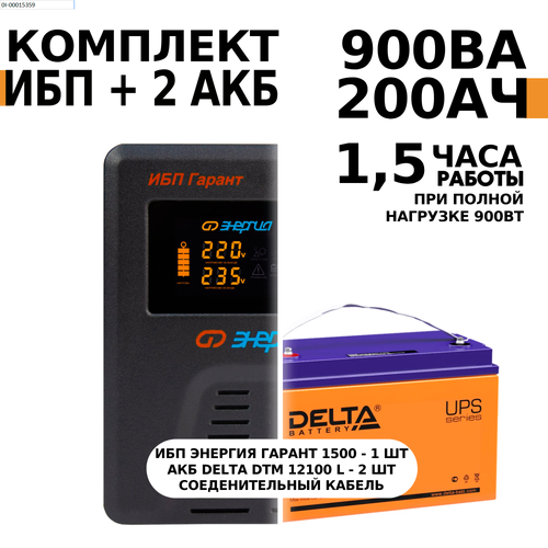 Интерактивный ИБП Энергия Гарант 1500 в комплект с АКБ Delta DTM 12100 L 2шт.