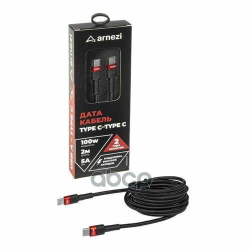 Дата-Кабель Type C - Type C (2М, 5A, 100W) Быстрая Зарядка, В Оплетке Arnezi A0605042 ARNEZI арт. A0605042
