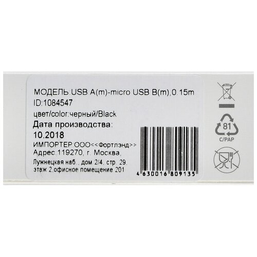 Кабель DIGMA micro USB (m) - USB (m), 0.15м