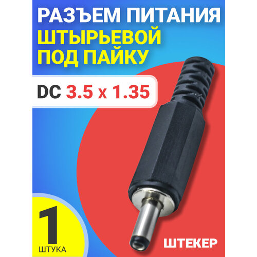 Разъем питания DC 3.5 x 1.35 штырьевой под пайку пластик на кабель GSMIN JS05 (Черный)