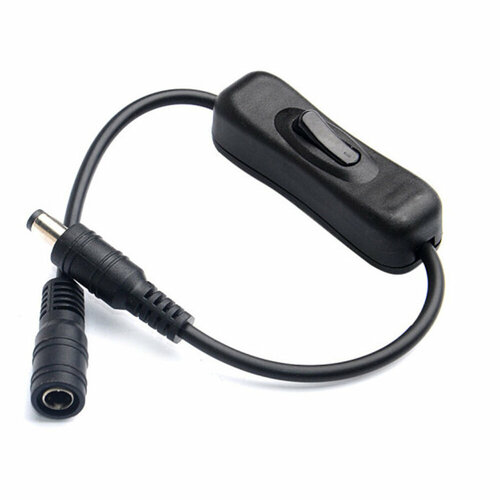 Кабель удлинитель переходник DC 5.5 x 2.1 GSMIN 304 с выключателем 2А, 0.3м (Черный)