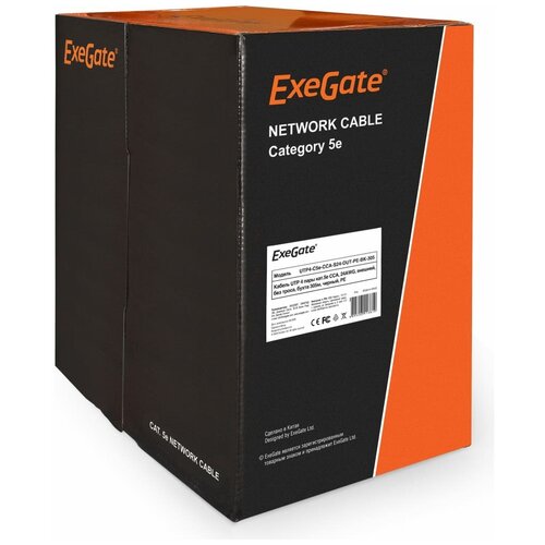 Кабель Exegate EX281819RUS UTP 4 пары кат.5e CCA, 24AWG, внешн, без троса, бухта 305м, черн, PE