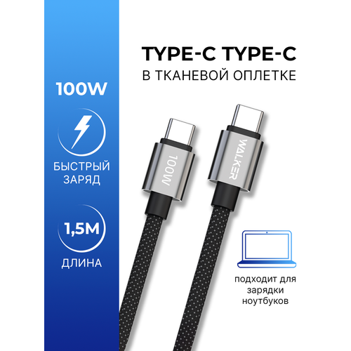 Кабель Type-C-Type-C, 1.5 метра, 100W, для зарядки ноутбука, телефона планшета, провод на айфон, шнур на андроид