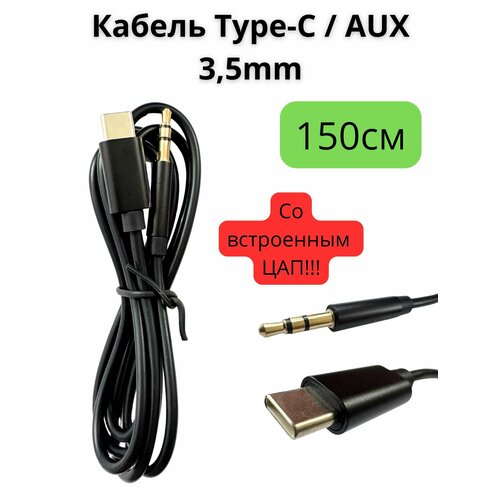 Кабель переходник (адаптер) AUX для наушников c USB Type-C на Jack 3.5 с ЦАП 1.5m