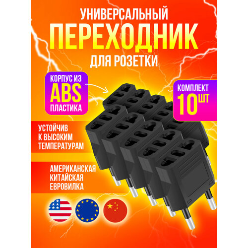 Универсальный переходник для американской, китайской вилки US/CN, Черный, 10 шт.