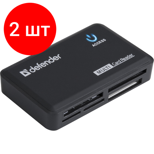Комплект 2 шт, Картридер DEFENDER OPTIMUS USB 2.0, порты SD/MMC, TF, M2, MC, CF, XD, 83501