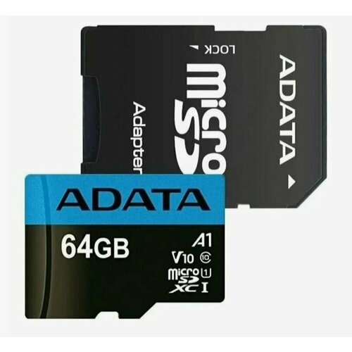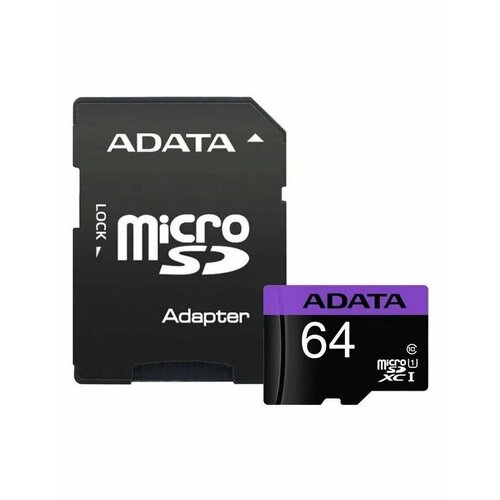 Карта памяти ADATA microSDXC 64 ГБ Class 10, UHS-I U1, R 50 МБ/с, адаптер на SD, 1 шт.