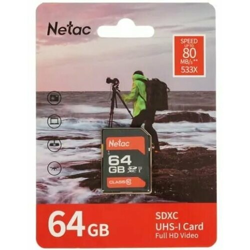 SD-карта памяти Netac NT02P600STN-064G-R, 64 ГБ, скорость до 80 Мб/сек