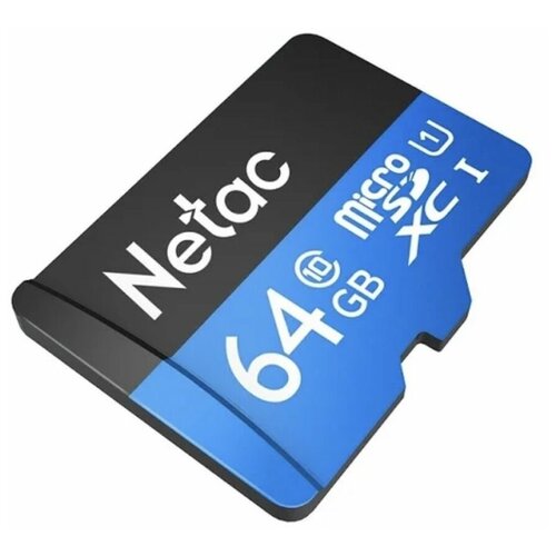 Карта памяти Netac microSD 64 ГБ Class 10, UHS-I, R 80 МБ/с, адаптер на SD, 1 шт., черный