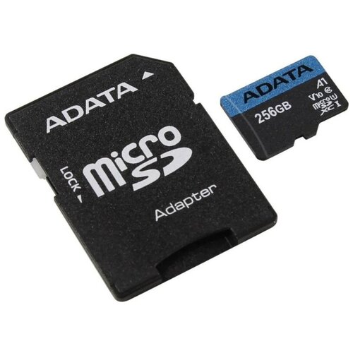 Карта памяти 256Gb - A-Data Premier MicroSDXC Class 10 UHS-I V10 A1 AUSDX256GUICL10A1-RA1 с переходником под SD (Оригинальная!)
