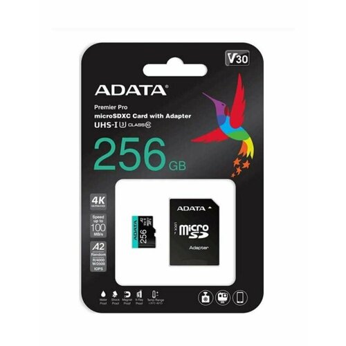 Карта памяти ADATA SDXC 256 ГБ Class 10, V30, R/W 100/80 МБ/с, 1 шт.