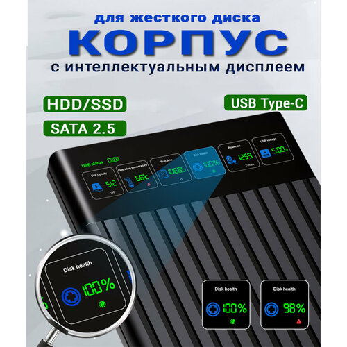 Корпус жесткого диска (бокс) SSD, HDD SATA 2.5, черный, USB 3.0, цифровой дисплей