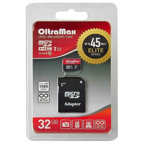 Карта памяти OltraMax microSDHC 32 ГБ Class 10, V10, A1, UHS-I U1, R 45 МБ/с, 1 шт.