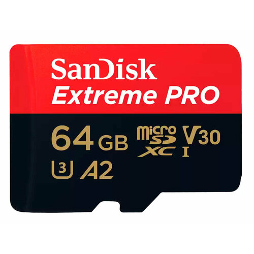 Карта памяти SanDisk microSDXC 64 ГБ Class 10, V30, A2, UHS Class 3, R/W 170/90 МБ/с, адаптер на SD, 1 шт., разноцветный