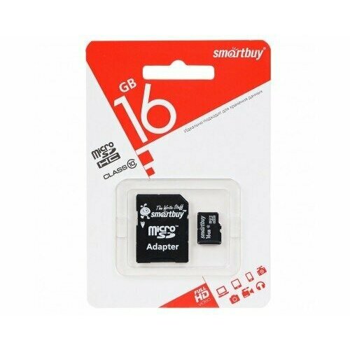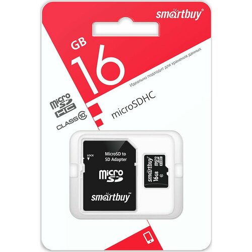 Карта памяти SmartBuy microSDHC (16 GB) 10 класс + адаптер SD