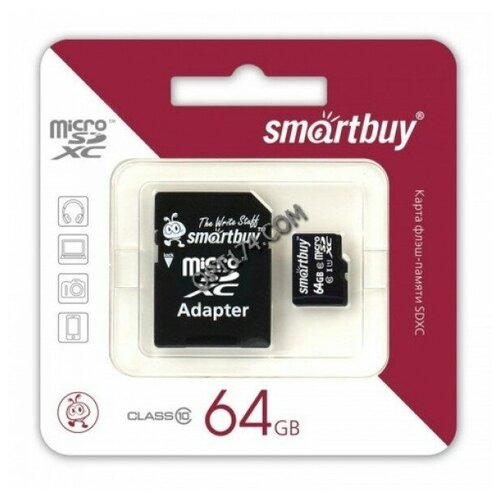 Карта памяти Micro 64GB SDXC SmartBuy Class 10 c адаптером