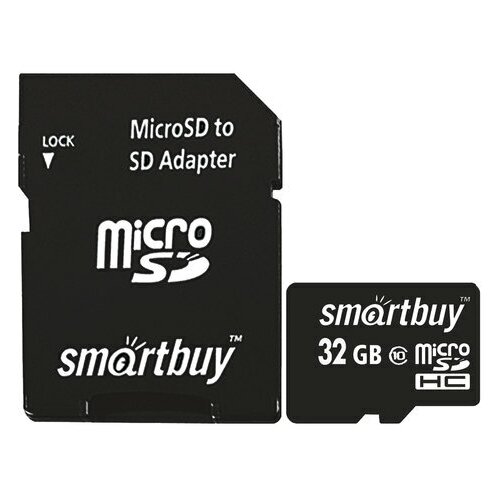 Карта памяти SmartBuy microSDHC 32 ГБ Class 10, V10, A1, UHS-I U1, R/W 25/30 МБ/с, адаптер на SD, RU, 1 шт.