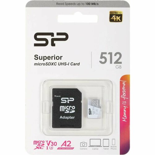 Карта памяти 512Gb - Silicon Power Superior MicroSDXC Class 10 UHS-I U3 SP512GBSTXDA2V20SP с адаптером SD