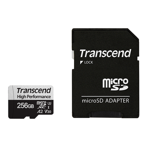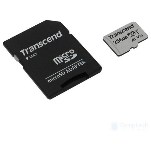 Карта памяти Transcend microSDXC 256 ГБ Class 10, V30, A2, UHS Class 3, R 100 МБ/с, адаптер на SD