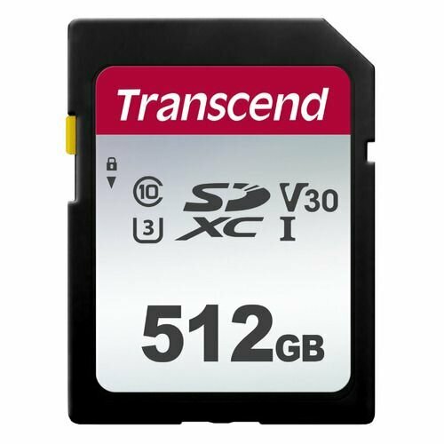 Карта памяти SDXC UHS-I U3 Transcend 512 ГБ, 100 МБ/с, Class 10, TS512GSDC300S, 1 шт, без адаптера