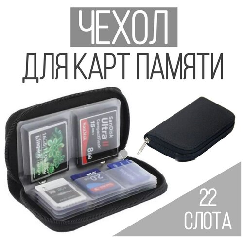 Органайзер для карт памяти, 22 слота. Чехол для мемори карт игровых приставок SD, CF, сим-карт от телефона. Чёрный