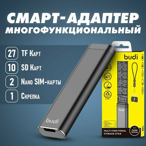 черныйКартридер USB-C с кабелем 65W и органайзер MicroSD - это устройство для чтения карт памяти, разработанное компанией BUDI.