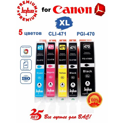 Комплект картриджей INKO PGI-470/CLI-471 XXL для Canon Pixma MG5740, MG6840, TS5040, TS6040 (5 цветов)