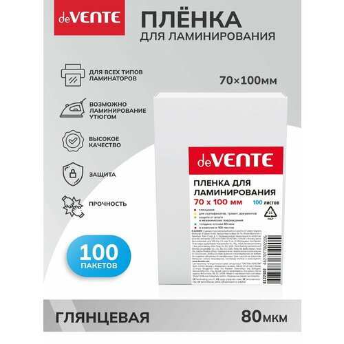 Пленка глянцевая для ламинирования 70x100 мм, толщина 80 мкм, 100 л