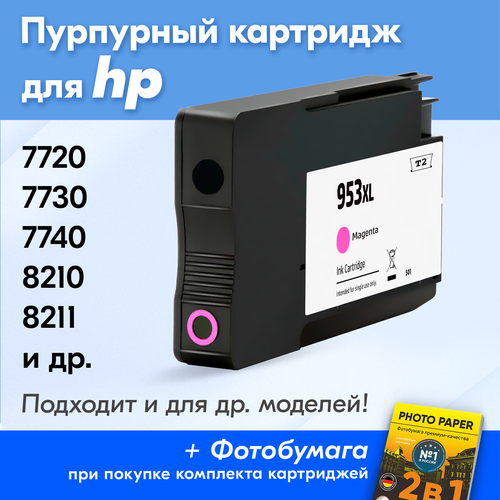 Картридж для HP 953XL, HP Officejet Pro 7720, 7730, 7740, 8210, 8211, 8218, 8700, 8710 и др. с чернилами пурпурный новый заправляемый