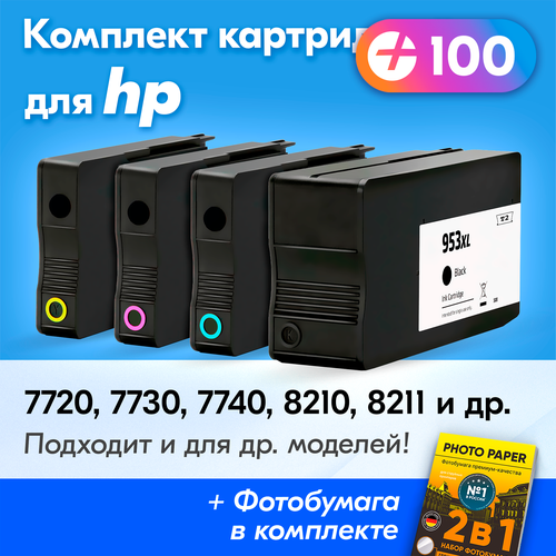 Картриджи для HP 953XL, HP Officejet Pro 7720, 7730, 7740, 8210, 8211, 8218, 8700, 8710 и др. с чернилами черный, голубой, пурпурный, желтый, новые заправляемые, 4 шт.