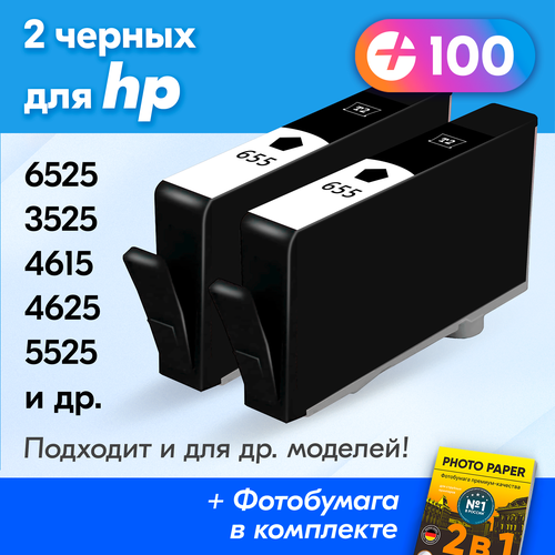 Картриджи для HP 655, HP Deskjet 3525, 4615, 4625, 5525, 6525 и др. с чернилами черные новые заправляемые, 2 шт.
