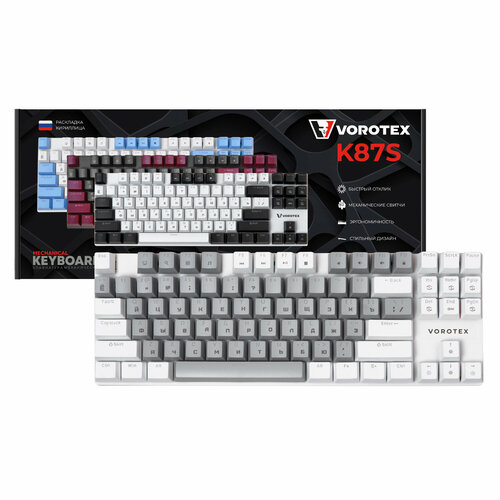 Игровая клавиатура VOROTEX K87S Red Switch, серый/белый, кириллица+QWERTY