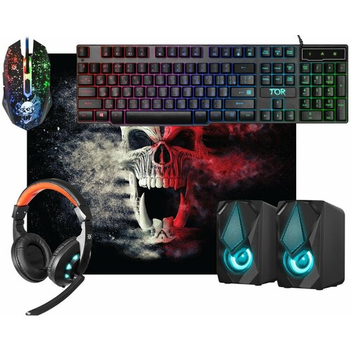 Комплект клавиатура + мышь + гарнитура + коврик Defender Singularity MKP-118, черный, английская/русская