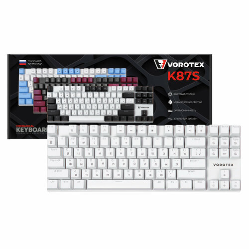 Клавиатура игровая проводная VOROTEX K87S Brown Switch, русская раскладка (Белый, чёрный)