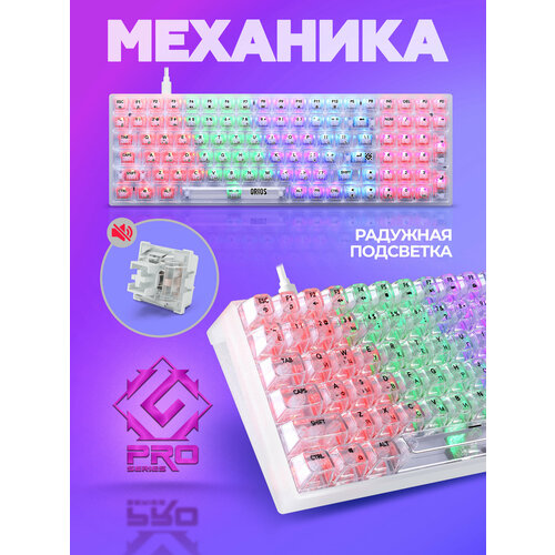 Ajazz Клавиатура проводная AK820 горячая замена, Английская раскладка, белый, фиолетовый
