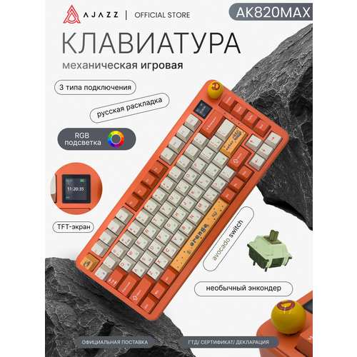 Механическая клавиатура Ajazz AK820 Max, оранжевая, 3 типа подключения, Avocado Switch
