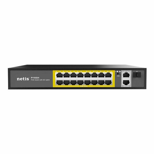Коммутатор Netis P116GH неуправляемый 16 портов 100 Мбит/с PoE+, 2 порта 1000 Мбит/с Uplink RJ45, 1 SFP порт Uplink