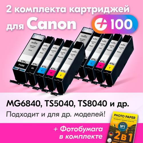 Картриджи для Canon PGI-470XL, CLI-471XL, Canon PIXMA MG6840, TS5040, MG7740 и др. с чернилами черный, голубой, пурпурный, желтый, новые заправляемые, 10 шт.