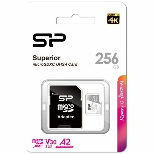 Карта памяти Silicon Power micro SDXC 256Gb Superior UHS-I U3 V30 A2 + ADP (100/80 Mb/s)