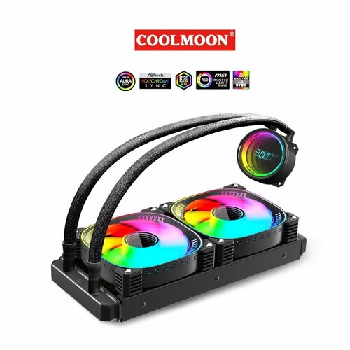 Система водяного охлаждения процессора Coolmoon ARGB 240 с датчиком температуры. Черный