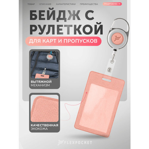Держатель для пропуска Flexpocket (Флекспокет / Флекспокэт / Флэкспокет / Флэкспокэт) с рулеткой предназначен для ношения бейджиков...