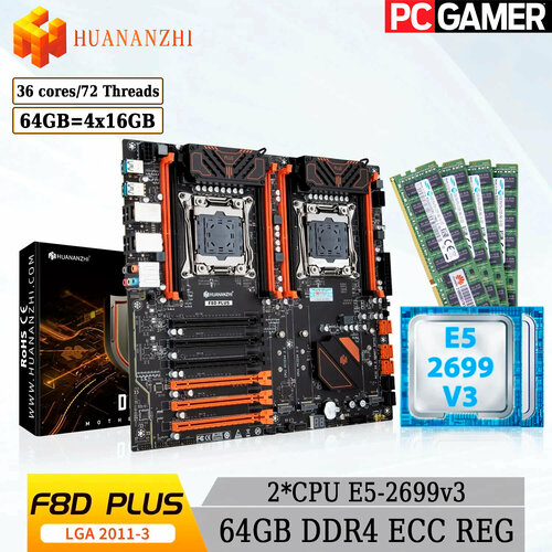 Комплект двухпроцессорная материнская плата Huananzhi X99-F8D PLUS + 2*CPU 2699V3 + 64GB DDR4 ECC