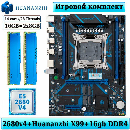Комплект материнская плата Huananzhi X99-QD4 + Xeon 2680V4 + 16GB DDR4 ECC REG 2x8GB Blue