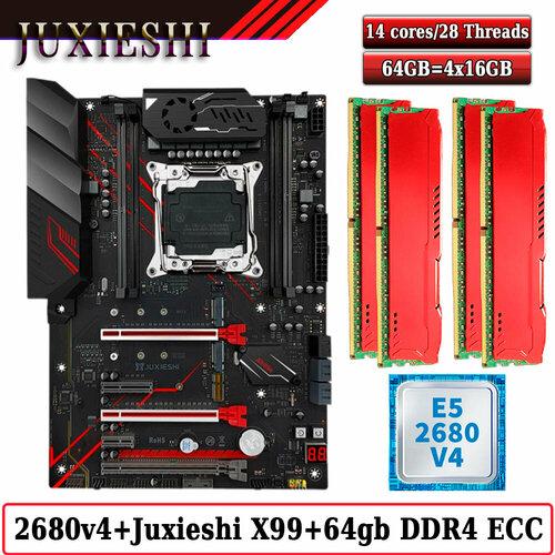 Комплект материнская плата Juxieshi X99-MR9A PRO + Xeon 2680V4 + 64GB DDR4 ECC 4x16GB Red