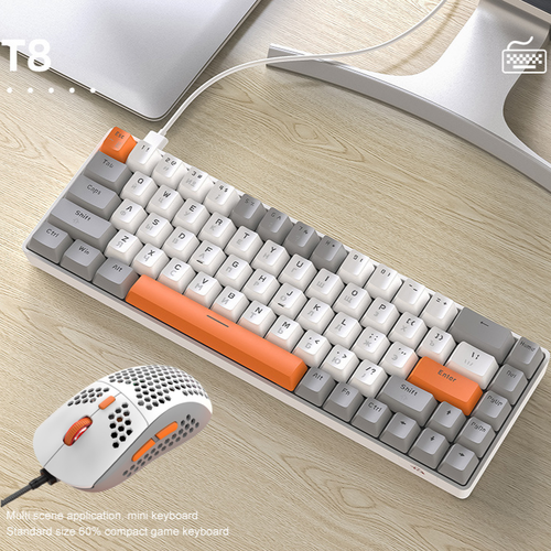 Комплект мышь клавиатура механическая русская Т8 мышка игровая М8 с подсветкой проводная набор для компьютера ноутбука