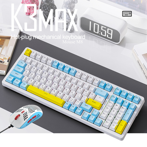 Комплект мышь клавиатура проводная механическая русская Wolf К3 Max+Hot-Swap мышка M8 с подсветкой набор для компьютера ноутбука, mouse keyboard