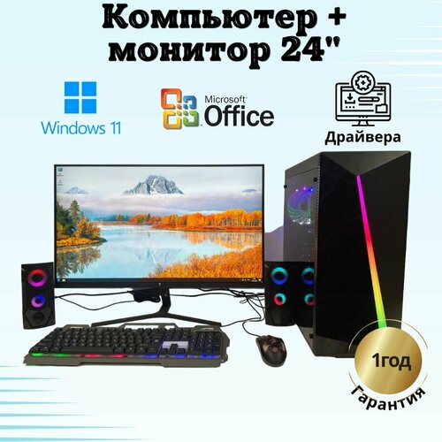 черныйКомпьютер для учебы и игр / Полный комплект: Системный блок, монитор, мышка, клавиатура, wi-fi адаптер, провода / Загружается и работает быстро / Компьютер протестирован и готов к работе / Свежие программы, офис, антивирус и драйвера установлены / Установлена операционная система windows 11 / Процессор Intеl E5-2630v4 - 20 ядра / ОЗУ 16 GB / SSD-256 GB - быстрая скорость загрузки / HDD-1TB / Мощная RX-570 4GB для современных игр на высоких настройках / Блок питания 600W / Корпус с прозрачной крышкой + вентиляторы c RGB подсветкой / Монитор 24" Большой с яркой качественной картинкой / Клавиатура и мышка с подсветкой клавиш / Гарантия 1 год. Надежная усиленная упаковка. Компьютер придет в целости и сохранности